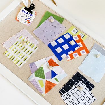 bright-whimsical prints in a modern color palette inspired by the passing landscapes and objects on a road trip